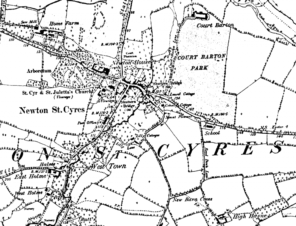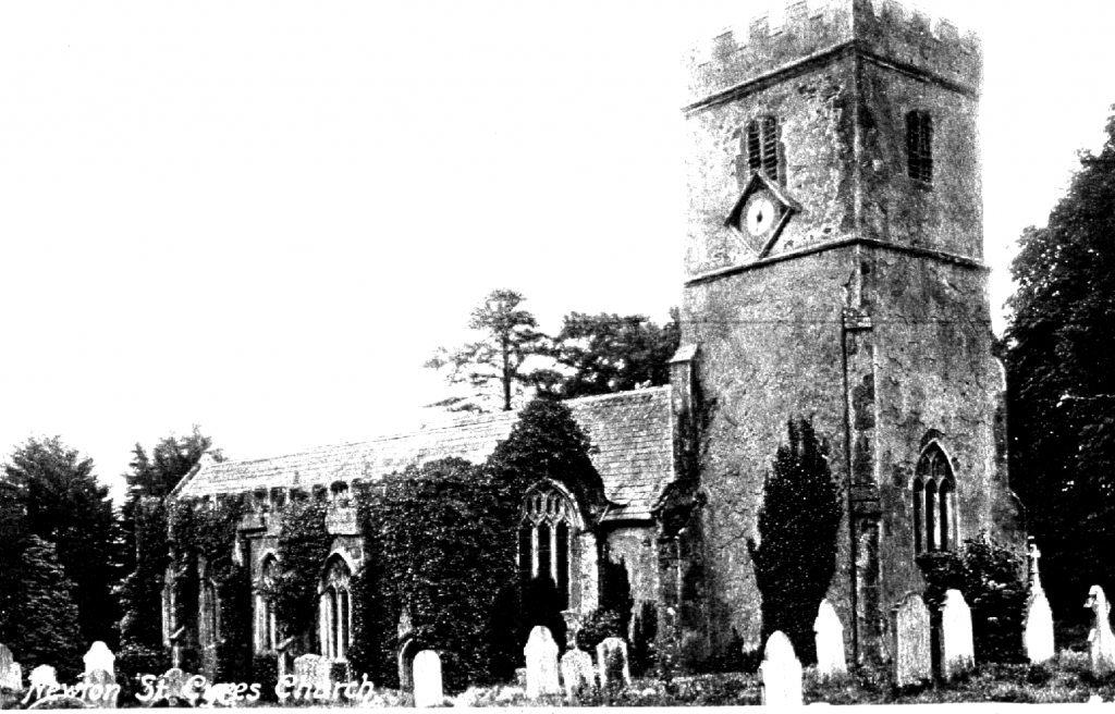 Newton St. Cyres is a small village on the road from Exeter to Crediton. It lies in a valley with wooded hills to the South and open ground to the North. The road from Exeter slopes down from the east side of the valley, runs through the village and climbs steeply up the west side. The parish church stands high above the village to the west close beside the road to Crediton. In the 18th century, the main village activity would be farming and in the early nineteenth century some small-scale mining took place a little to the south of the village. Ores for lead, some manganese and a little silver were extracted and processed elsewhere. Being on the main road from Exeter to Crediton, there would have been much activity servicing passing travellers There would have been plenty of work for blacksmiths, wheelwrights and coopers and innkeepers (there were four Inns in the village). At the height of these activities the population was about 1300. But in the mid-18th century it was less than half that number. In later years the population reduced again to about six or seven hundred.