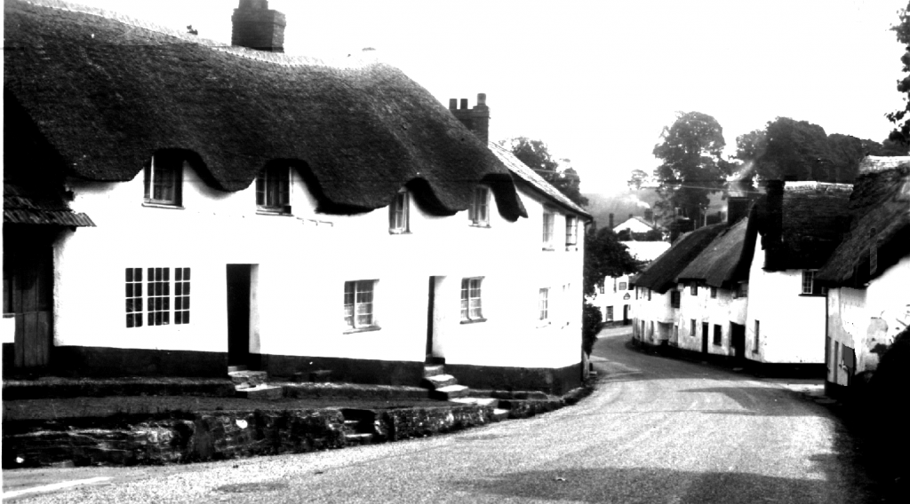 Notes. The picture of the village above shows the main road looking towards Exeter. It shows the village as it was at the beginning of the 20th Century. In recent times, the road has been widened and many of the cottages have been demolished. The cottages seen in the picture are of “cob”. This is a method of building which uses a compressed mixture of local clay and straw to make the solid walls. Provided a stone foundation is used and the thatched roof is kept in good repair, such houses will last for centuries. “You must keep the feet and head dry”